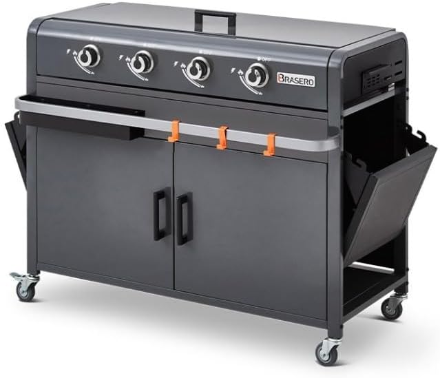 BRASERO – Plancha Lola à gaz sur chariot équipé Gun Metal – 4 brûleurs à gaz – jusqu’à 14 convives